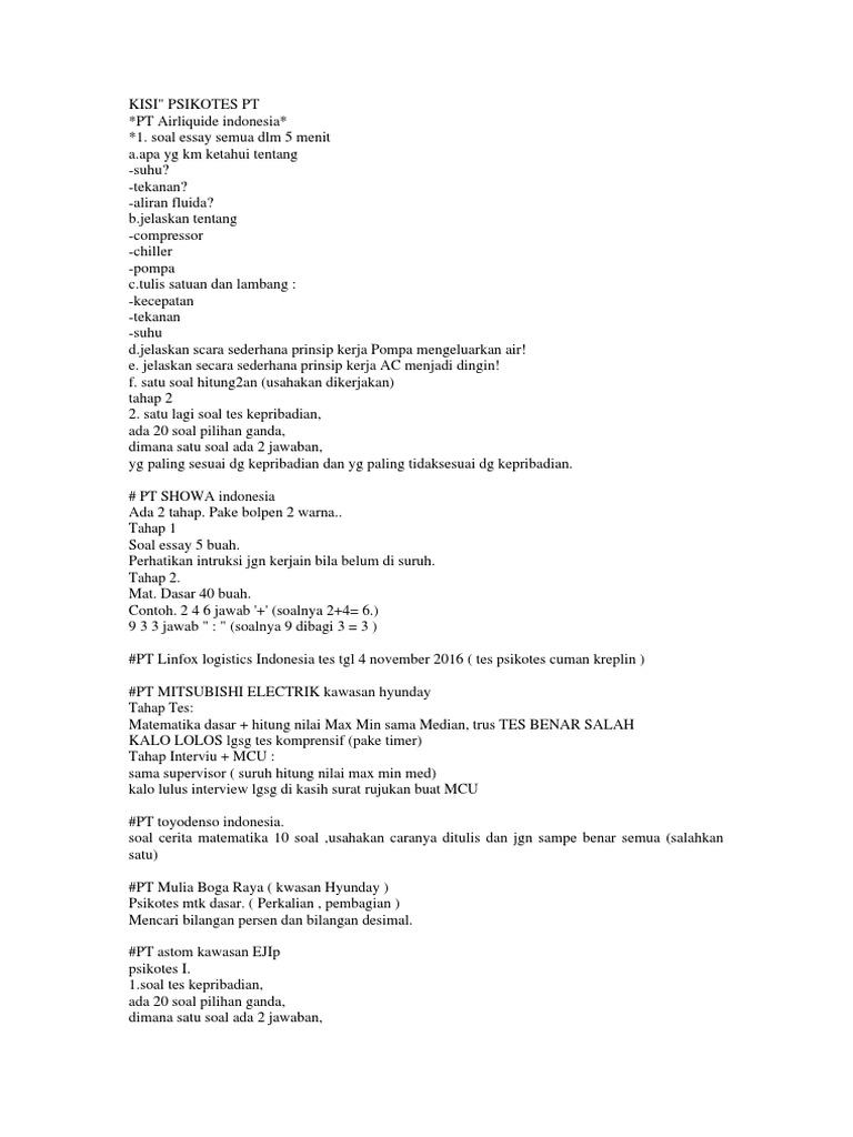Bocoran Pengalaman Tes Seleksi Mdp Pt Mayora Indah Tbk from lh3.googleusercontent.com Dalam tes ini terdapat soal soal mengenai persamaan kata yang mempunyai sistematika tersendiri. Soal tes di pt.torabika : Psikotes adalah salah satu tahapan seleksi kerja. Rudi lulus test masuk kerja di pt mayora youtube. Gemah ripah, ada yang bisa saya bantu? Maka kalian akan diminta untuk memilih salah satu sifat/kepribadian yang kalian anggap sifat. Mamat mendapatkan nilai di dalam 4 pelajaran yakni 86, 78, 85, serta 92. Tini tamatan sma dan melamar bekerja di pt.aneka.